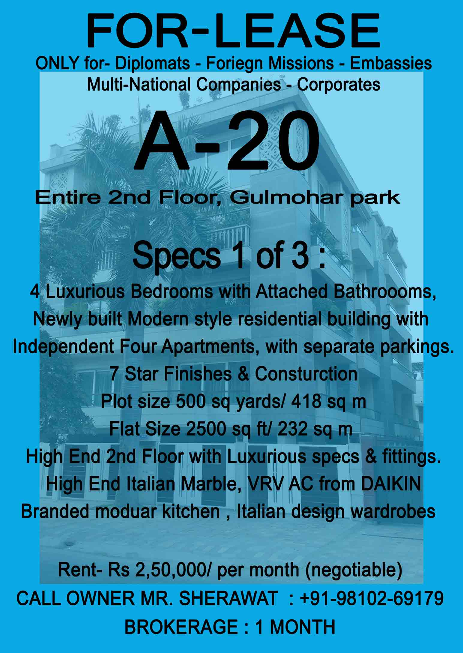 Plot Size 500 sq yards, Flat Size 2500 sq ft